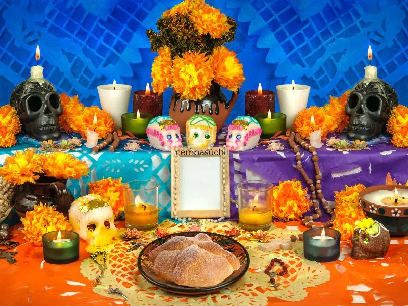 To charakterystyczne, słodkie wypieki w kształcie czaszki lub kości. Chleb ten jest często umieszczany na ofrendas i spożywany przez rodzinę jako część celebracji.